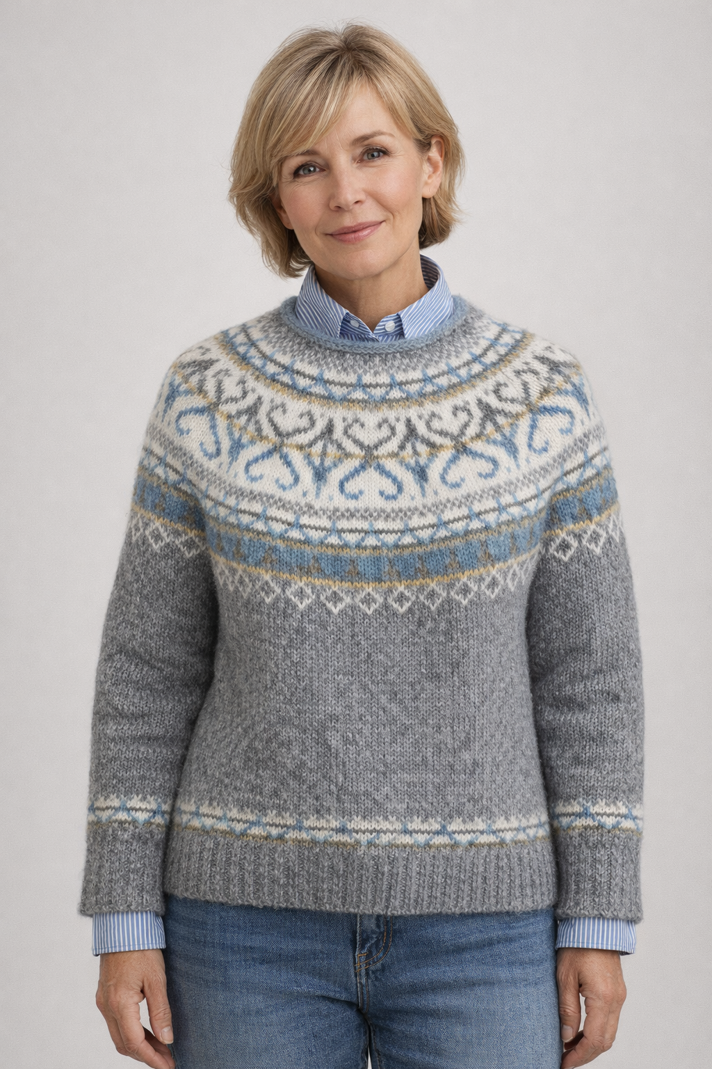 The soft, non-itchy knit feels gentle against the skin, making it ideal for all-day wear. Its relaxed silhouette drapes beautifully, creating an elegant look that’s easy to style for both casual moments and more polished outfits. Finished with a timeless Nordic-inspired design, this sweater adds understated character and lasting appeal to your wardrobe.